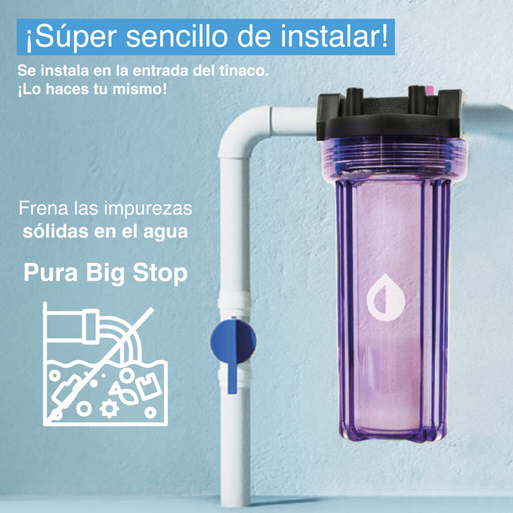 PURA BIG STOP es de muy fácil conexión a rosca de entrada y salida en cualquier tramo de la tubería de agua.