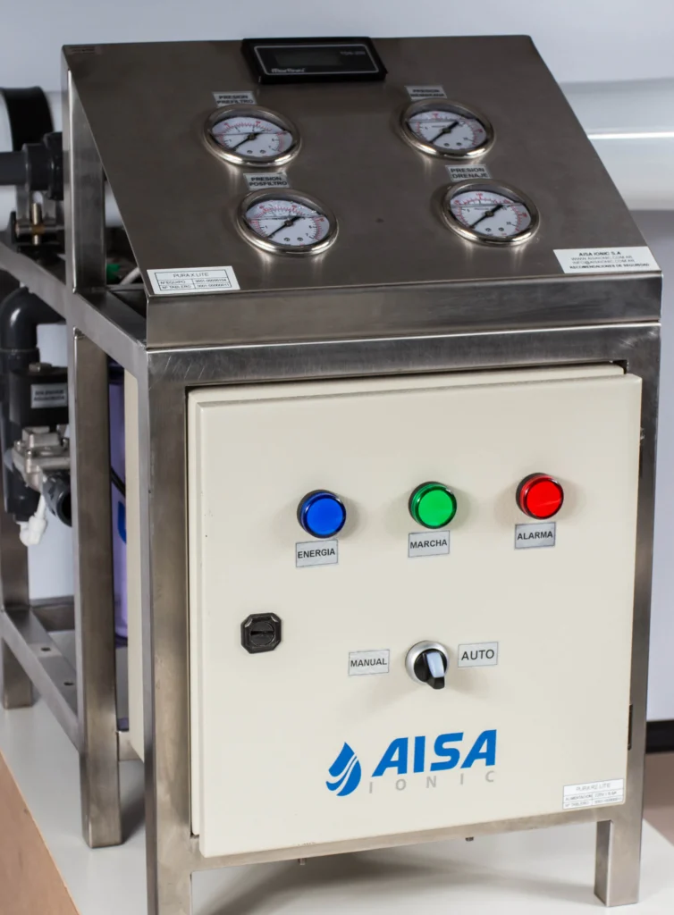Para quien tenga que usarlo (pues operarlo sería ponernos muy técnicos cuando no es necesario), la lectura y el control son claros: presiones operativas (entrada/salida de membrana) para vigilar diferenciales de presión y planificar cambio de consumibles; flujómetros (concentrado y permeado) para ajustar la producción optimizando el rendimiento; medidor de conductividad que muestra la calidad del agua producida en tiempo real. El resultado: proceso predecible, libre de sorpresas, con un mantenimiento optimizado programado, no reactivo.