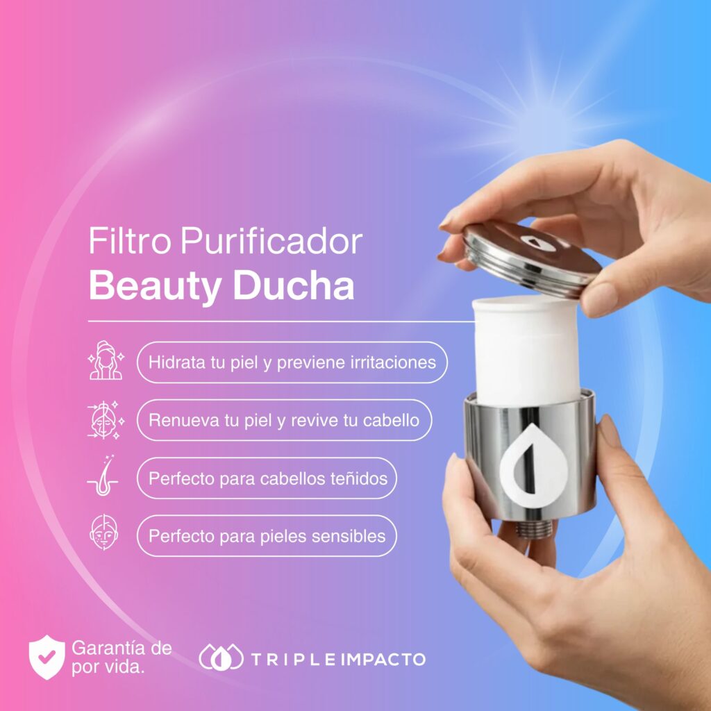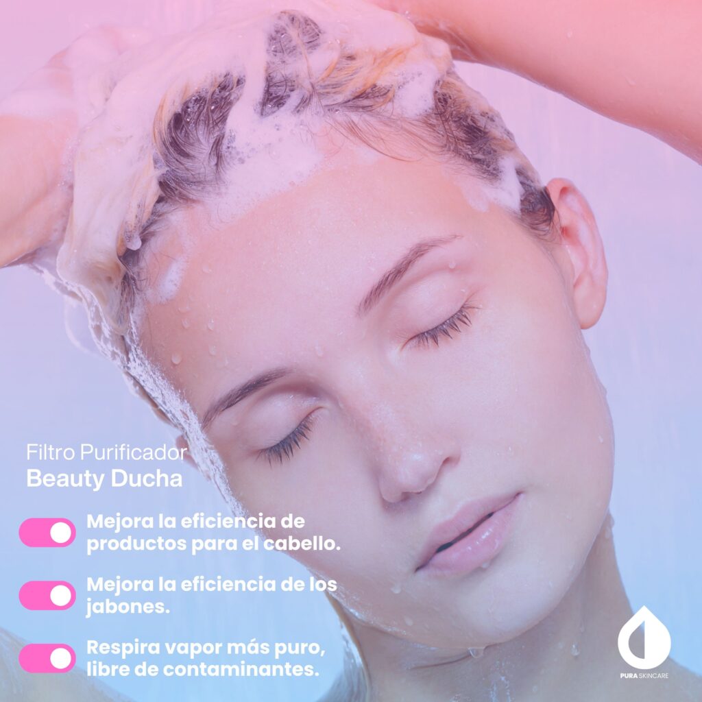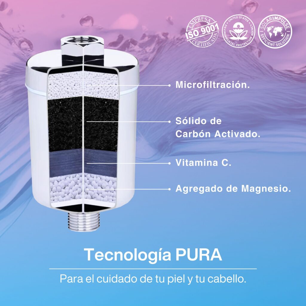 Filtración inmediata con Pura Iguazú. De alto caudal, elimina Cloro, sustancias químicas, sarro, prolonga el efecto de tratamientos de cabello, protege la tintura, piel suave protegida con agua purificada, optimiza la efectividad de jabones, shampoo, cremas, tratamientos de salud y belleza, optimiza al máximo tu experiencia de cuidado de la piel y el cabello.