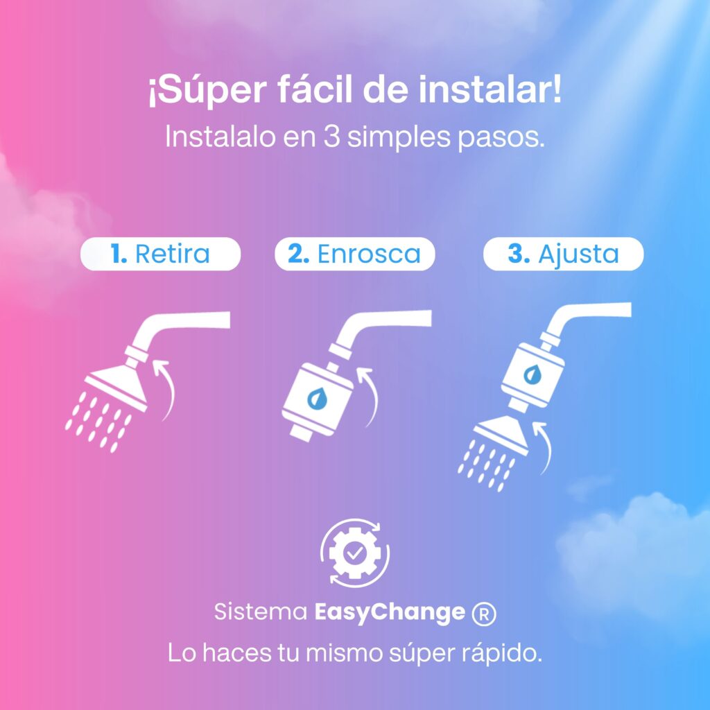 Fácil, Rápido y Seguro. Pura Iguazú, es súper fácil de instalar, te tomará 5 a 10 minutos en hacerlo tu mismo, solo colocas el purificador Pura entre el caño de agua que tienes en la ducha de tu baño y la regadera que tu tienes.