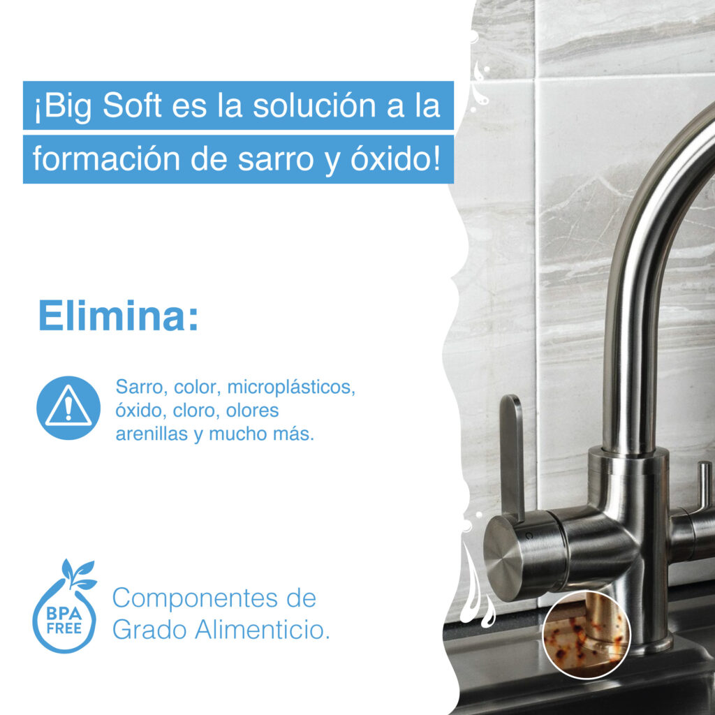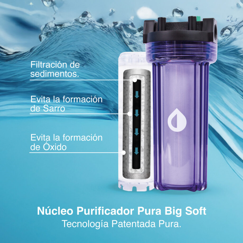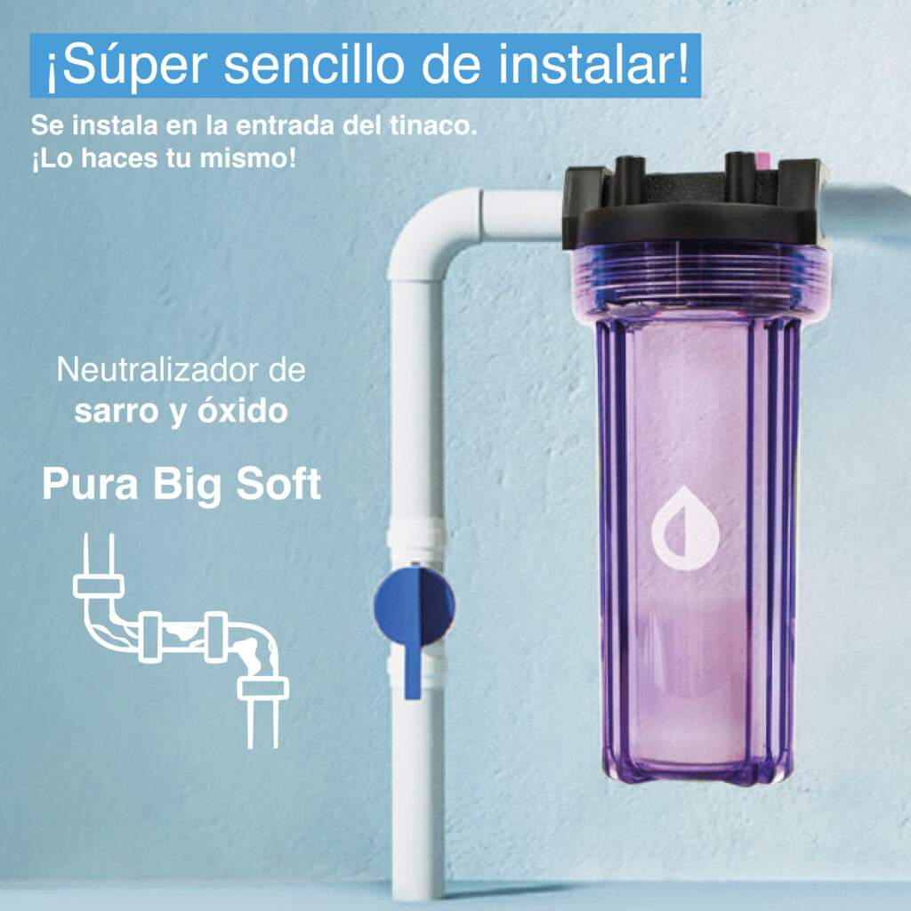 Cada PURA BIG SOFT está pensado en una función específica, evitar que el sarro se siga acumulando y al mismo tiempo limpiar las tuberías por dentro del sarro previamente formado. Gracias a los cristales formulados en base a Hexametafosfato de Sodio nuestra tecnología neutraliza la acción incrustante en todo tipo, material y diámetro, de caños.